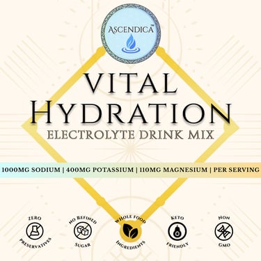 Rich in sodium, potassium, magnesium, calcium and over 90+ trace minerals from sustainably sourced marine and plant origins, Ascendica prioritizes bioavailability, ingredient purity, and intentional formulation—without the unnecessary maltodextrin, added sugars, or commercially refined sodium chloride.